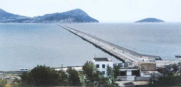 本工程于1986年9月10日进行主体抛填,1989年6月11日工程施工至西大堤1602m时开始采用水下爆破法处理软基。93年12月8日大堤合拢,94年7月全面竣工,投资共15479万元,成为当时我国最长的抛石填海大堤。西大堤工程竣工后,由建港指挥部组织武汉测绘科技大学和江苏省地矿局等单位多次进行变形观测内外也工作,认为施工质量优良,取得了国内外同行的一致好评。
