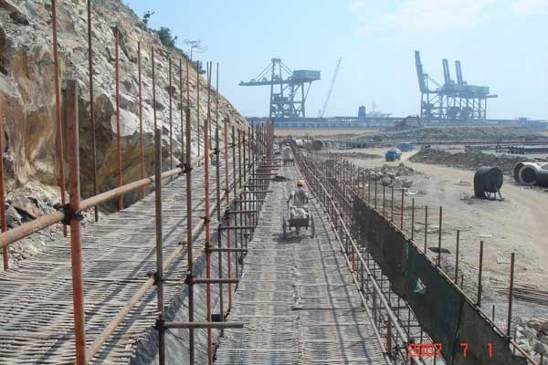 宝钢马迹山港工程位于泗礁本岛西南1.5km处,本港至上海吴淞口约60海里,距北仑港74海里,从上海港到各大洲的国际航线均从嵊泗海域经过。马迹山港围堤、陆域形成工程所需土石料由马迹山本地就地开山采取,由宝山钢铁(集团)投资愈4000万,我公司承接的宝钢马迹山港开山采石工程,自1996年建设以来,完成开山采石量560万m3,爆破挤淤180万m3,回填港区场地40万㎡,山体护坡4万m3,被评为部级优良工程。